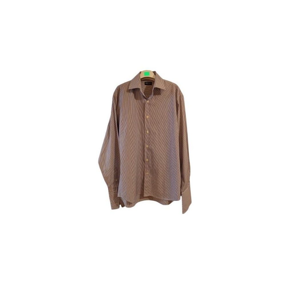 Camicia da uomo in tessuto di puro cotone a fantasia rigata multi color blu rosso e celeste il modello glamour di tendenza a manica lunga con i polsini da gemelli chiusura a bottoncini color madreperla taglia M (15 - 1/2). camu067. Lunghezza 82 cm. giro collo 38 cm. larghezza della spalla 49 cm. larghezza del torace da ascella ad ascella 58 cm. lunghezza delle maniche 69 cm. In eccellenti condizioni. Balmain