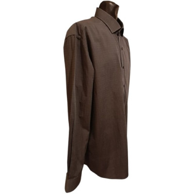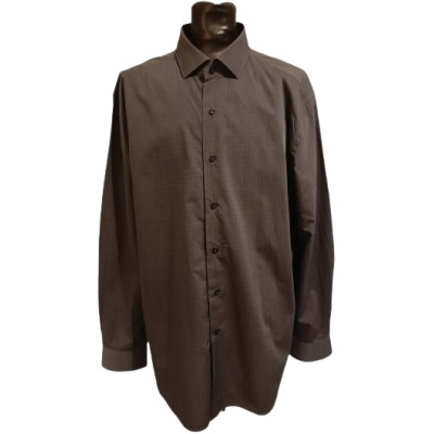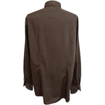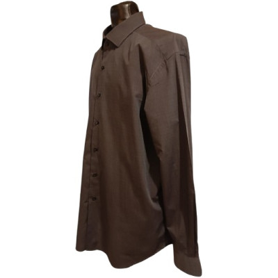 Camicia da uomo in puro cotone superfine di colore grigio scuro il modello glamour di tendenza taglio sartoriale (tailor fit) a manica lunga con chiusura a bottoncini di colore grigio scuro taglia XL (Italiana 44 - 17 e 1/2). camu020. Lunghezza 86 cm. larghezza della spalla 51 cm. larghezza del torace da ascella ad ascella 62 cm. lunghezza delle maniche 69 cm. In eccellenti condizioni. Made in Italy - Xacus
