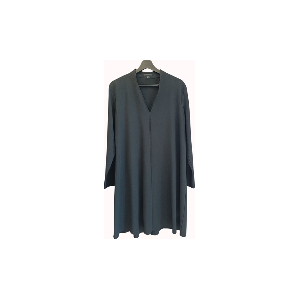 Abito da donna in tessuto di lyocell 78% poliammide 19% elastan 03% color nero il modell glamour di tendenza con scollatura a V manica lunga taglia L. dsd125. Lunghezza 98 cm. larghezza della spalla 46 cm. larghezza del torace da ascella ad ascella 56 cm. lunghezza delle maniche 63 cm. In eccellenti condizioni. Cos