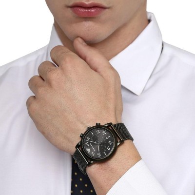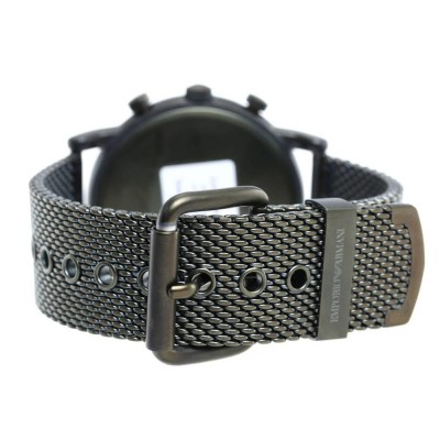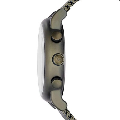 Cronografo elegante da uomo al quarzo,cassa in acciaio,quadrante nero,bracciale in acciaio,vetro minerale.Caratteristiche tecniche:modello con il movimento al quarzo,cassa in acciaio inossidabile color verde opaco da 43 mm di diametro con lo spessore da 11 mm,fondello in acciaio a vite,quadrante color nero con indici e lancette dorate con datario sulle ore 6,vetro minerale anti shock e graffi,water resistant 05 atm 50 metri,bracciale in acciaio inossidabile color verde opaco a maglia Milanese con chiusura di sicurezza a fibbia in acciaio. Garanzia internazionale 2 anni. Swiss made. Collezione Luigi Emporio Armani AR11115