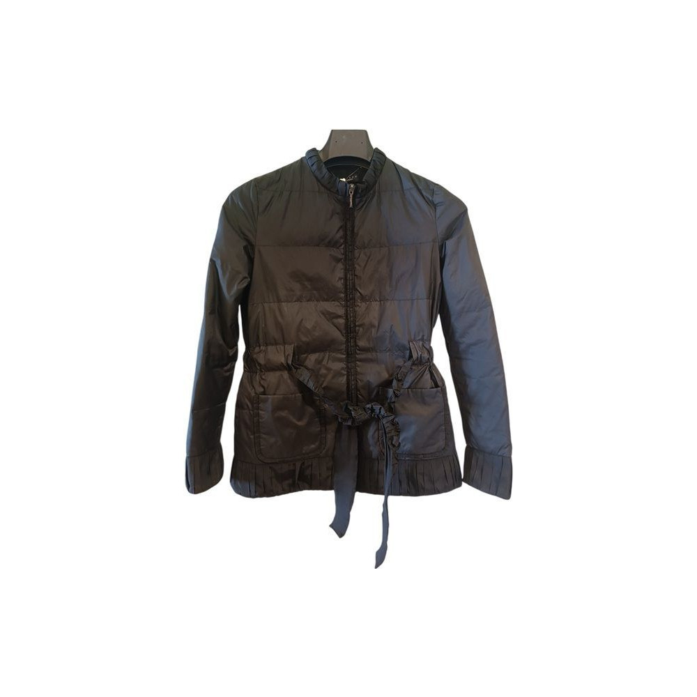 Giacca da donna in tessuto di poliammide/poliestere color nero lucido il modello fashion di tendenza l'interno imbottito in vere piume di anatra con cintura elastica sui fianchi due tasche esterne chiusura a zip taglia XS. giud013. Lunghezza 70 cm. larghezza della spalla 37 cm. larghezza del torace da ascella ad ascella 48 cm. lunghezza delle maniche 58 cm. In eccellenti condizioni. Twin-Set by Simona Barbieri