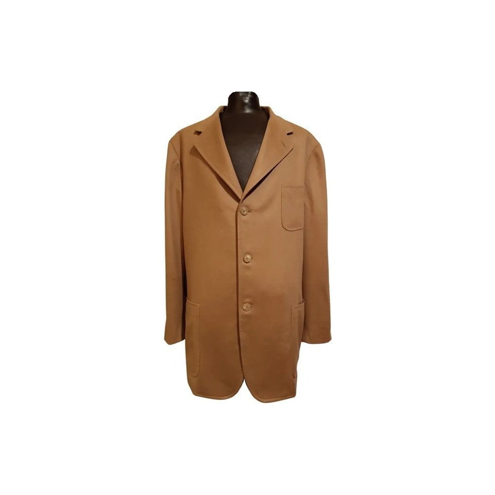 Giacca da uomo in lana cashmere 100% di colore beige/cammello il modello luxury di tendenza 3 bottoni con maniche foderate ed elementi in tessuto rayon cupro taglia 56. Lunghezza 86 cm. larghezza spalla 51 cm. larghezza torace 62 cm. lunghezza maniche 63 cm. In eccellenti condizioni. Originale ed autentica. Agnona - Made in Italy