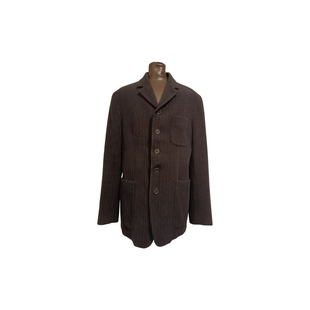 Giacca da uomo in tessuto di lana 90% poliammide 10% color blu scuro in gessato marrone il modello glamour di tendenza 5 bottoni con l'interno foderato in tessuto di acetato 65% viscosa 35% taglia 52. acu022. Lunghezza 89 cm. larghezza della spalla 46 cm. larghezza del torace da ascella ad ascella 54 cm. lunghezza delle maniche 68 cm. Sprovvista della targhetta indicazione taglia. In eccellenti condizioni. Made in Italy - Gigli