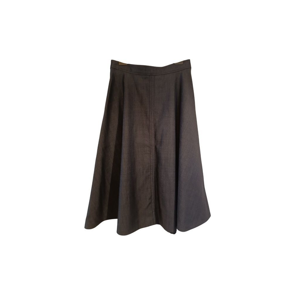 Gonna in tessuto di lana vergine color blue denim il modello glamour di tendenza svasata con la chiusura posteriore a zip taglia 44. gne075. Lunghezza 78 cm. larghezza della vita 39 cm. larghezza inferiore 132 cm. In eccellenti condizioni. Made in Italy - Max&Co.